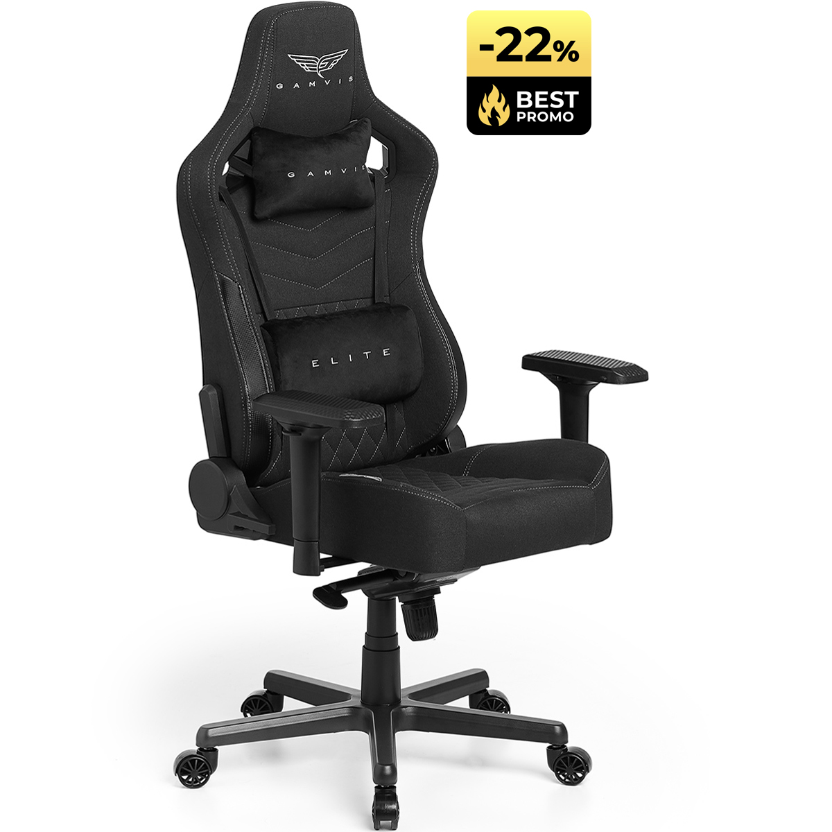 Materiałowy Fotel Gamvis ELITE 2.0 XL PRO – Czarny / Diamond White